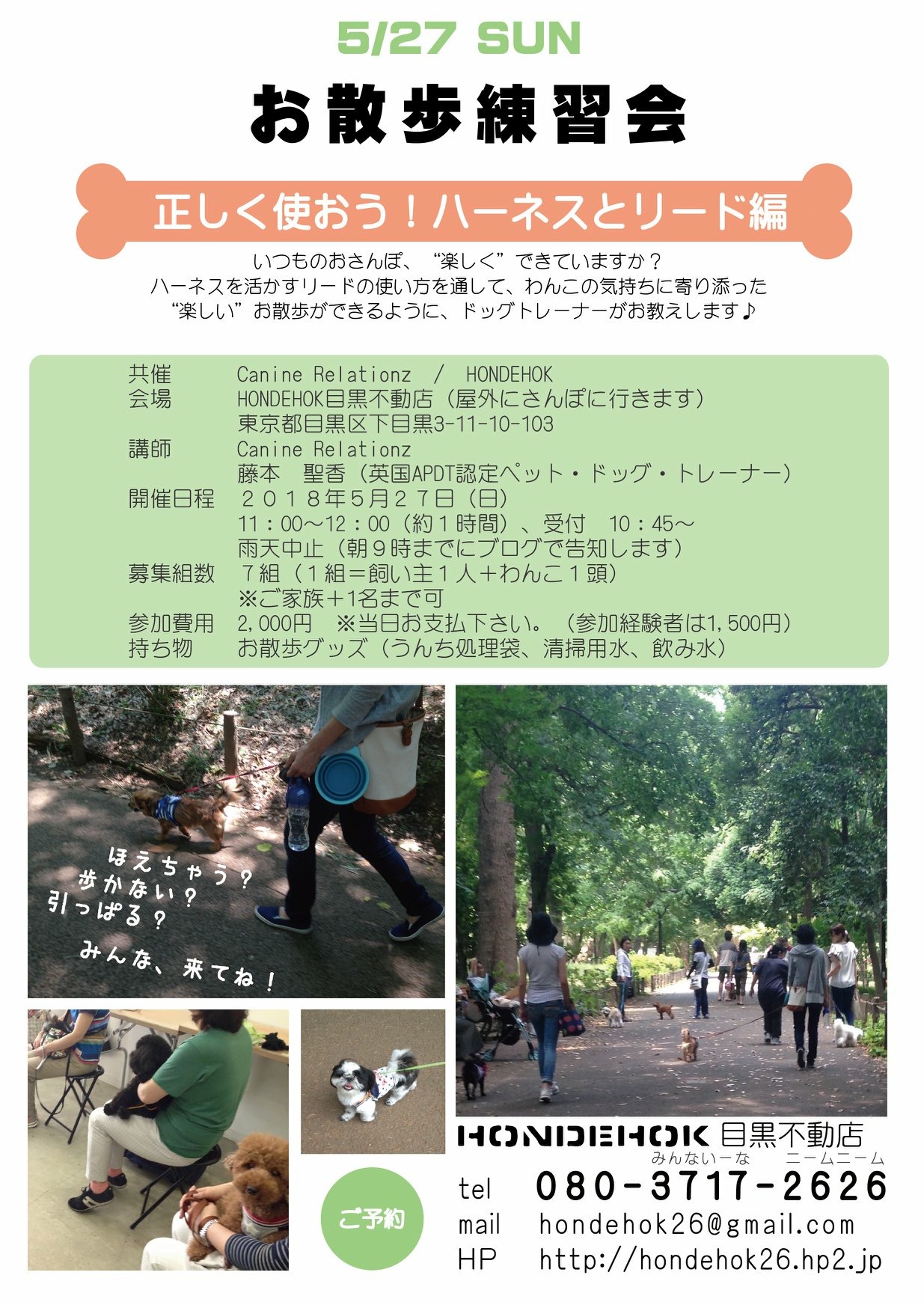 ※お申込みの際は、「お散歩練習会」参加希望の旨、お名前、当日につながるご連絡先、わんこのお名前と犬種、お悩み(吠える等簡単に)お知らせ下さい。