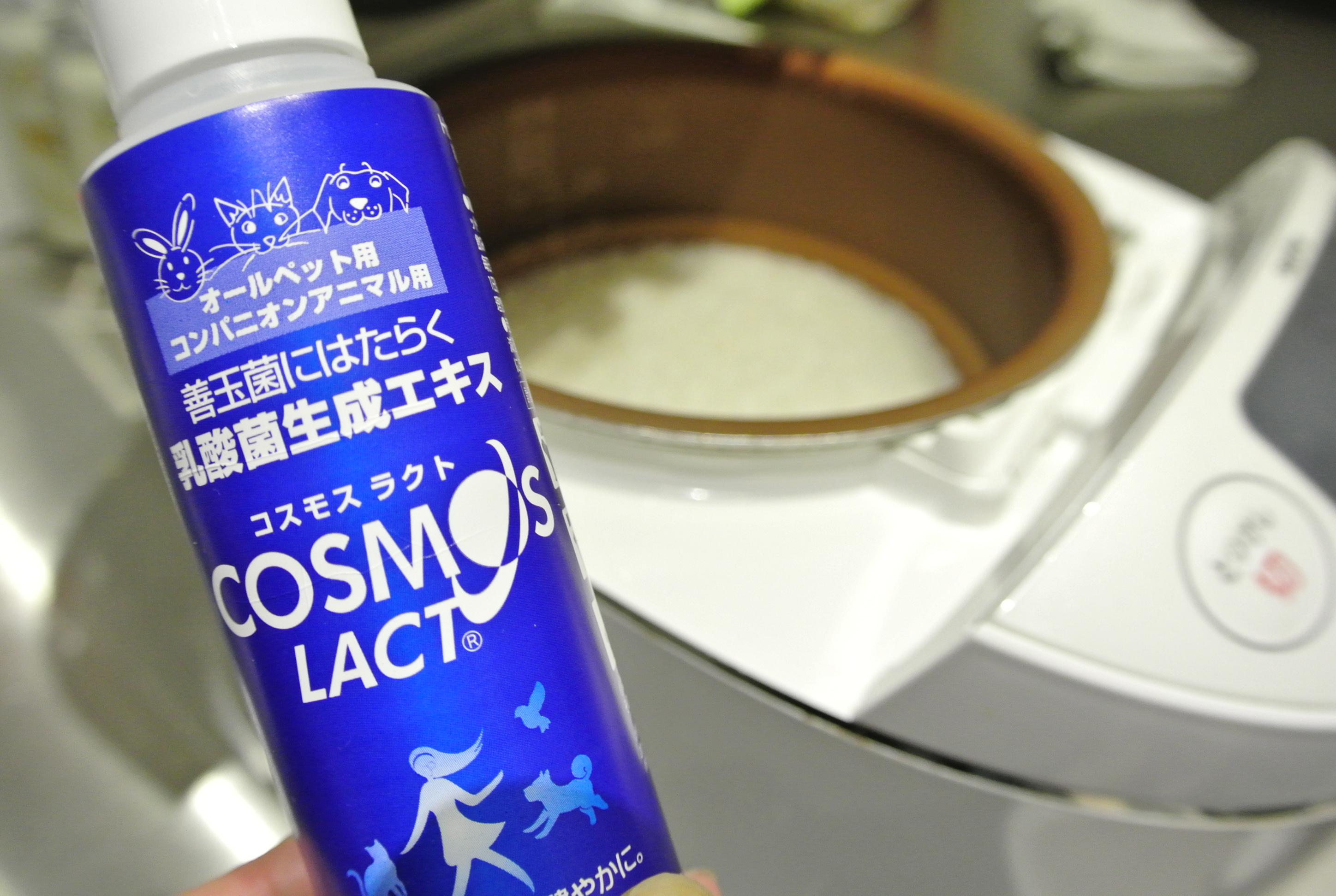付属の計量カップで、コスモスラクトを10ml程度いれて、炊飯のタイマーをセット!