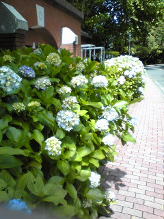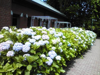 記念館前のアジサイの花が満開になっています