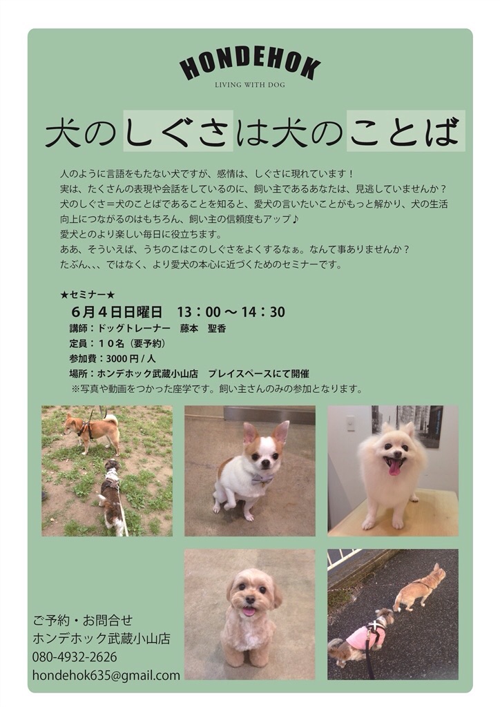 ※お申込みの際は、「犬のしぐさは犬のことば」セミナー参加希望の旨、お名前、当日につながるご連絡先をお知らせ下さい。